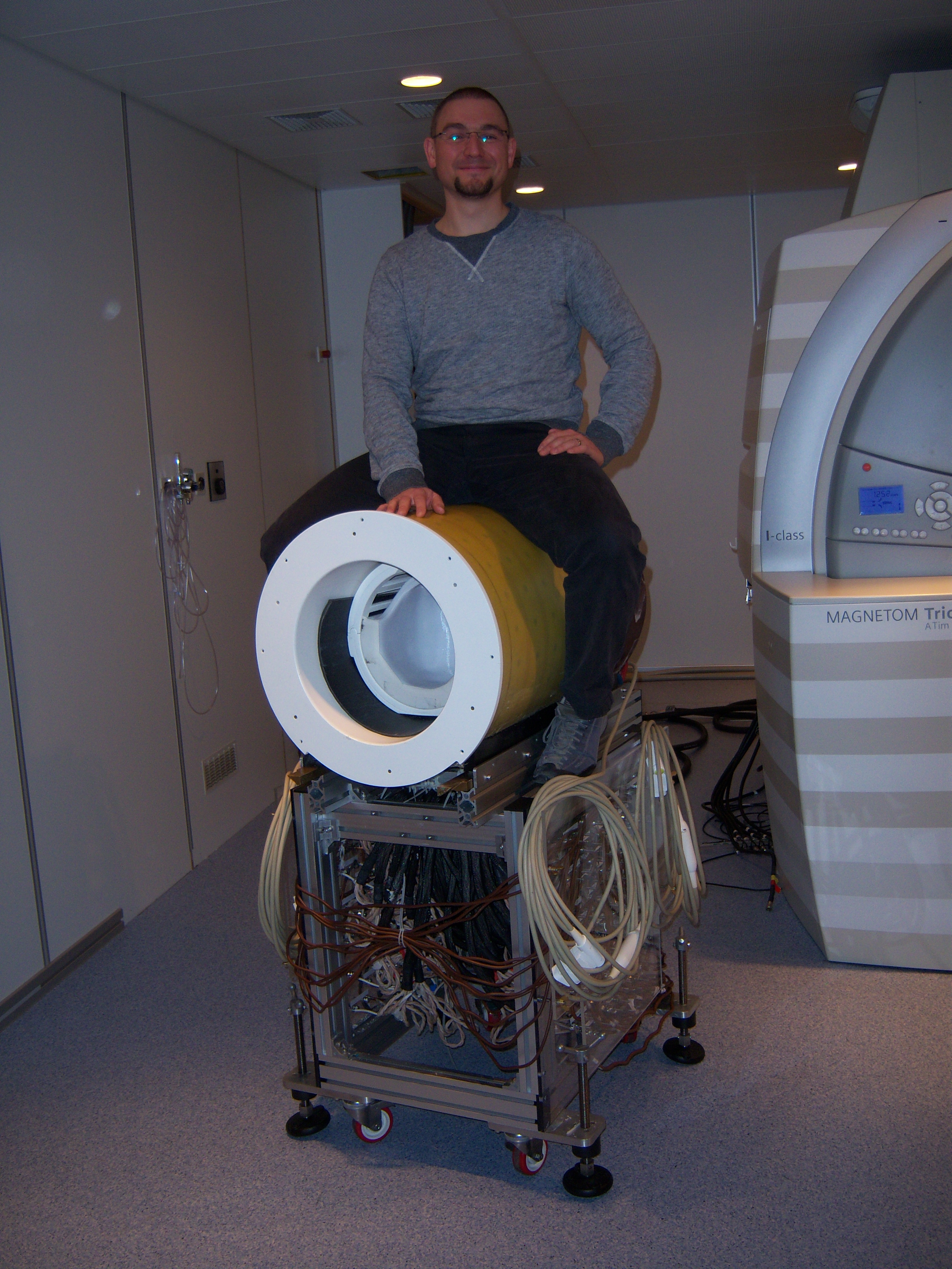 Sebastian: The parallel imaging technique with localized gradients (PatLoc) was developed in a previous project. This was based on nonlinear encoding fields and it demonstrated that many things you can do with RF (not everything, but a lot) are also possible in the gradient domain. In the meantime, Christoph Juchem published his multi-coil approach. So, the idea came about to build a gradient system that would basically generate any kind of encoding field we could possibly wish for a big playground to test new methods and to try out new things.